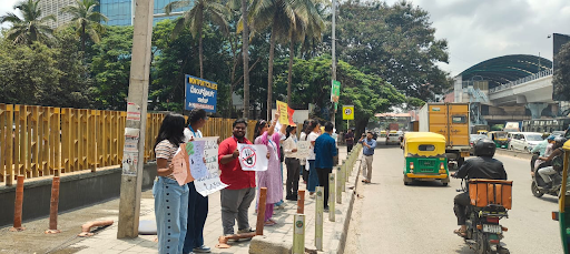Students are gathered outside the college campus to spread awareness on Suicide Prevention.